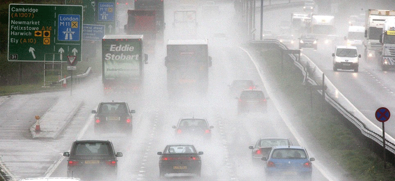 The Highway Code says that stopping distances will be at least double in wet weather compared top dry conditions, because your tyres will have less grip on the road.
