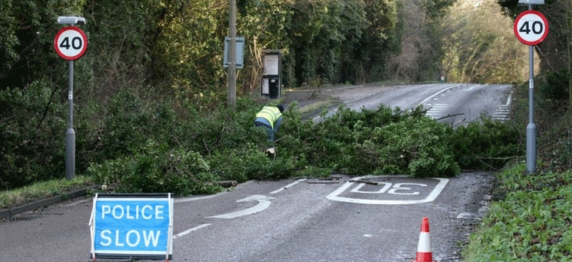 Trees on the road – driving during storm force winds you may encounter trees, branches or other debris that have been blown down onto the road. Hitting obstacles like this could be fatal, so don’t forget to keep your speed down and be alert at all times.